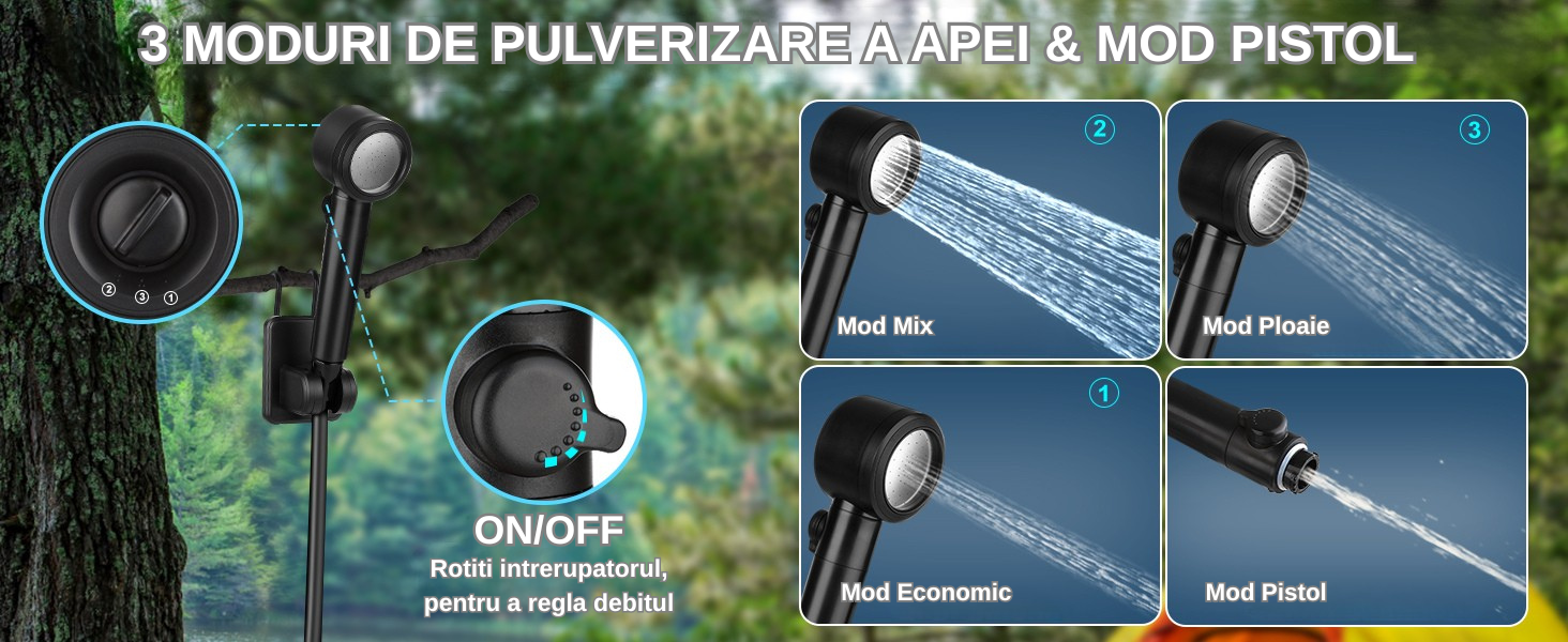 ✔️ Cap de duș reglabil (4 moduri)