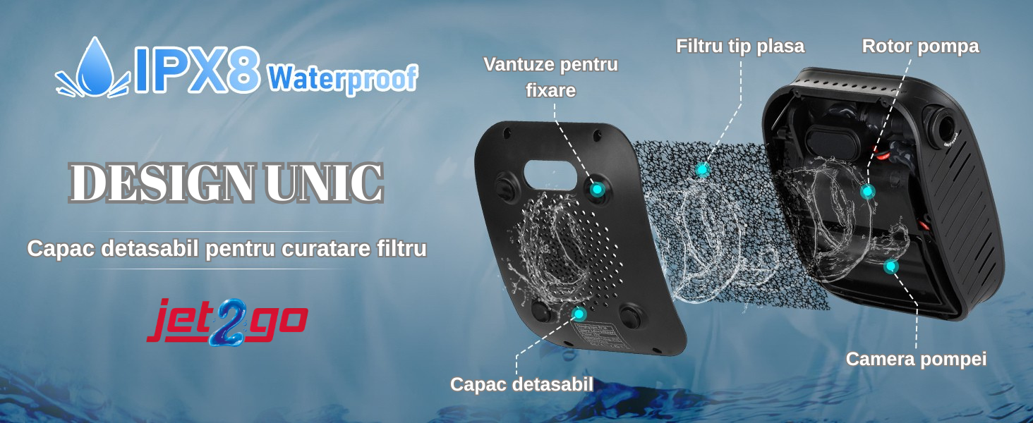 REZISTENT LA APĂ IPX8 + CONSTRUCȚIE DURABILĂ